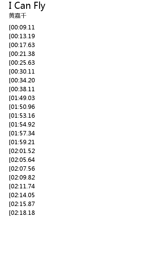 | [02:59.92][02:09.82][01:03.01] | I Can Fly |
