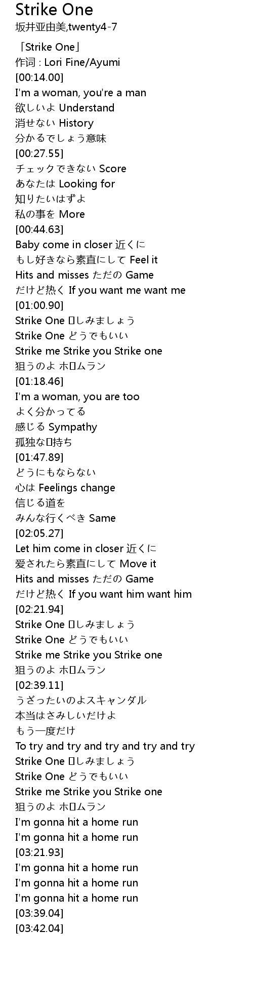 | [03:01.06] | Strike One |