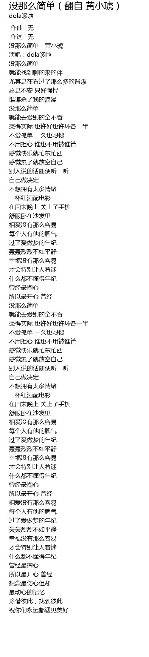 | [00:05.00] | 没那么简单 - 黄小琥 |