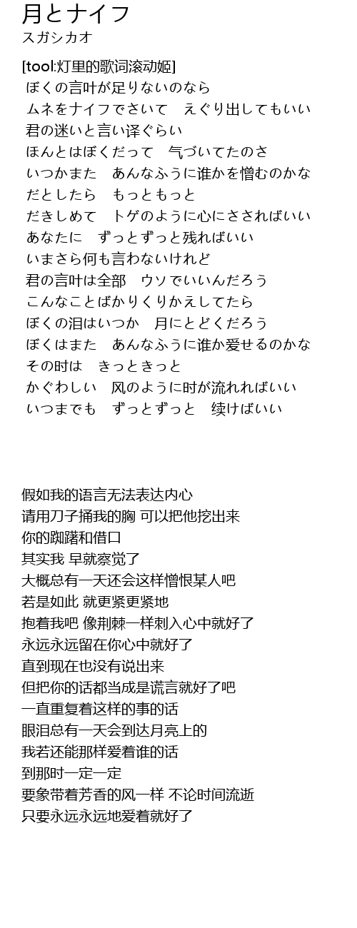 | [02:07.221] | ぼくの泪はいつか 月にとどくだろう |