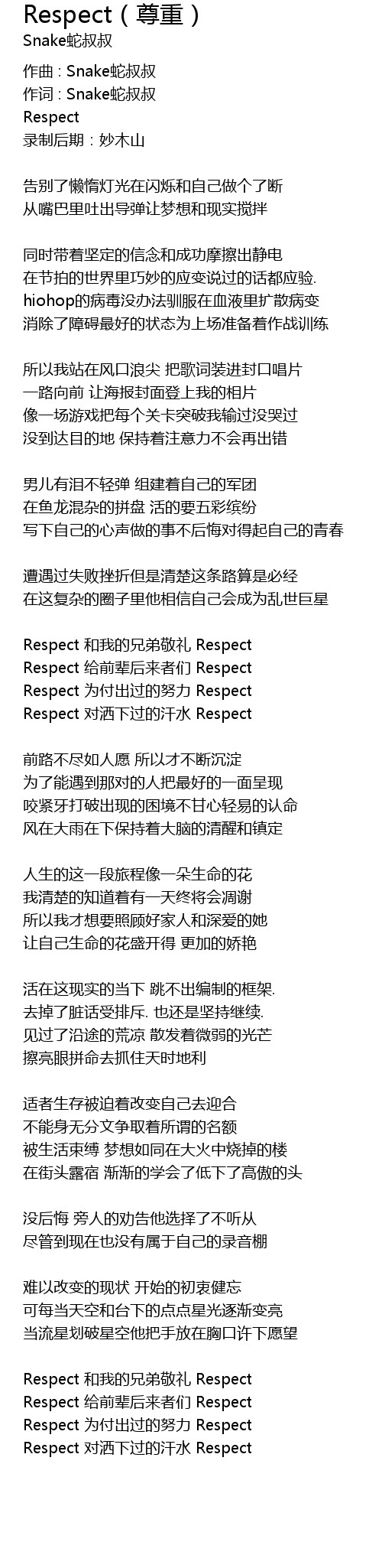| Respect 为付出过的努力 Respect | |