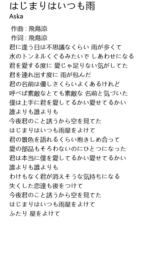 | Song | はじまりはいつも雨 |
