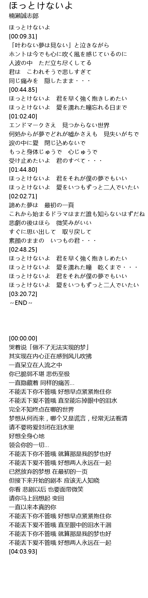 ほっとけないよ 愛を濡れた瞳 乾くまで・・・ |
