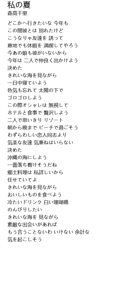 | Song | 私の夏 |
