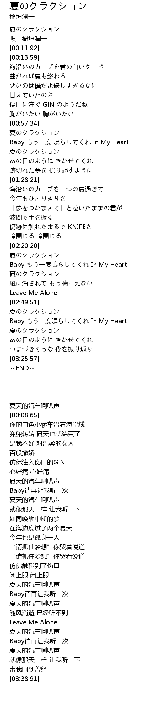 | [02:25.90] | Baby もう一度鳴らしてくれ In My Heart |