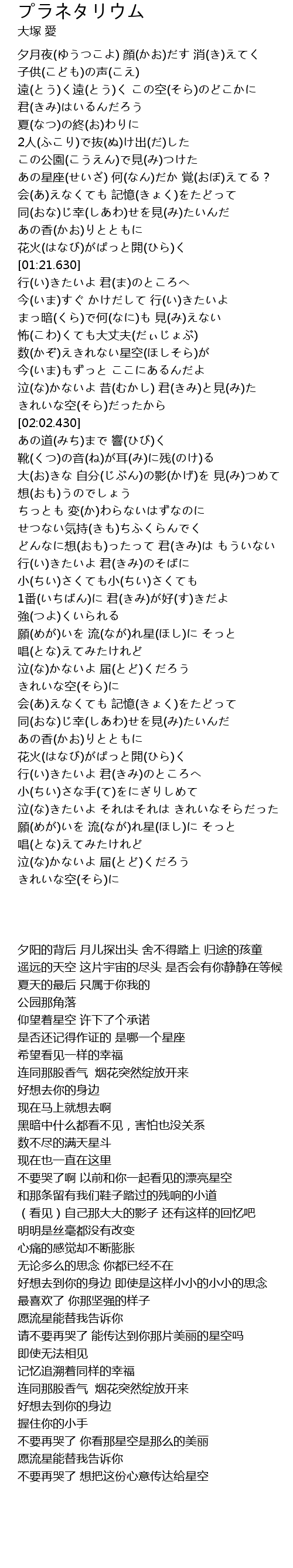 | [04:22.890] | 願(めが)いを 流(なが)れ星(ほし)に そっと 唱(とな)えてみたけれど |