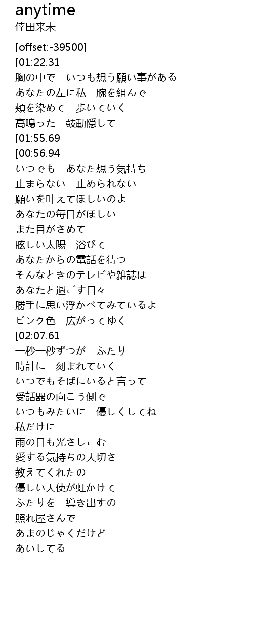 | [00:13.00][01:22.31][02:33.61][03:25.14] | 倖田來未-anytime |