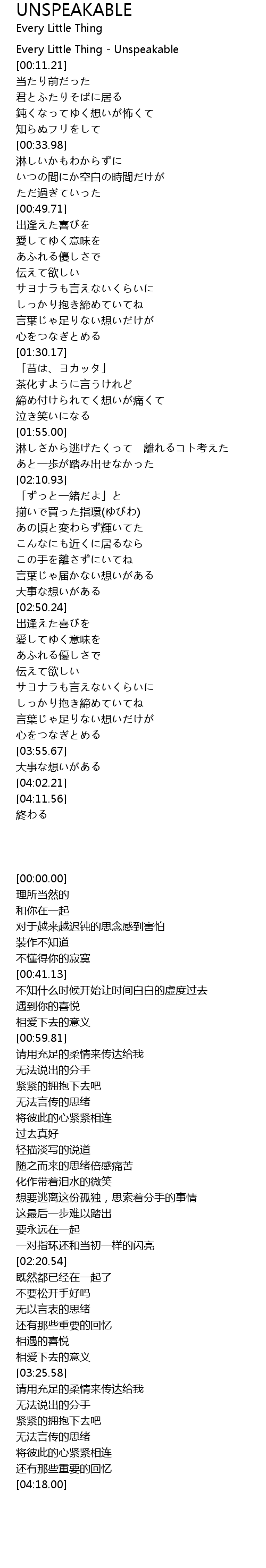 | [00:00.00] | Every Little Thing Unspeakable |