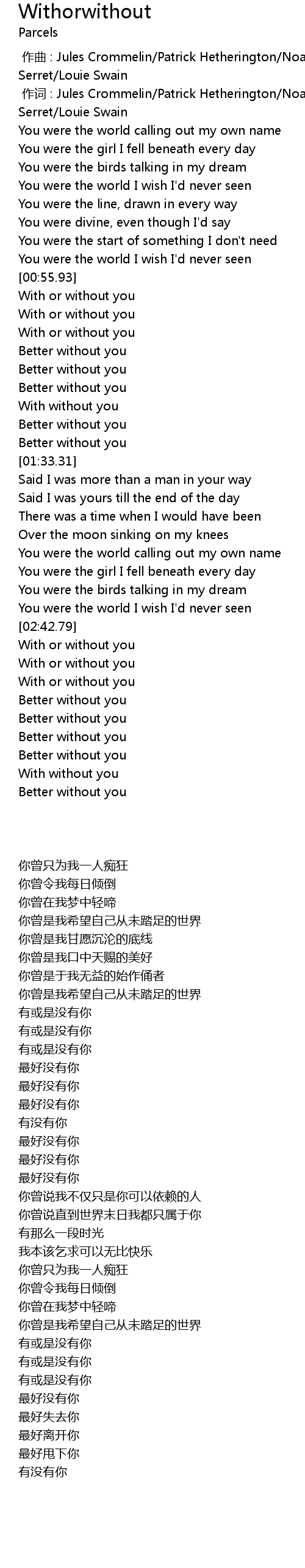 | [02:55.95] | With or without you |