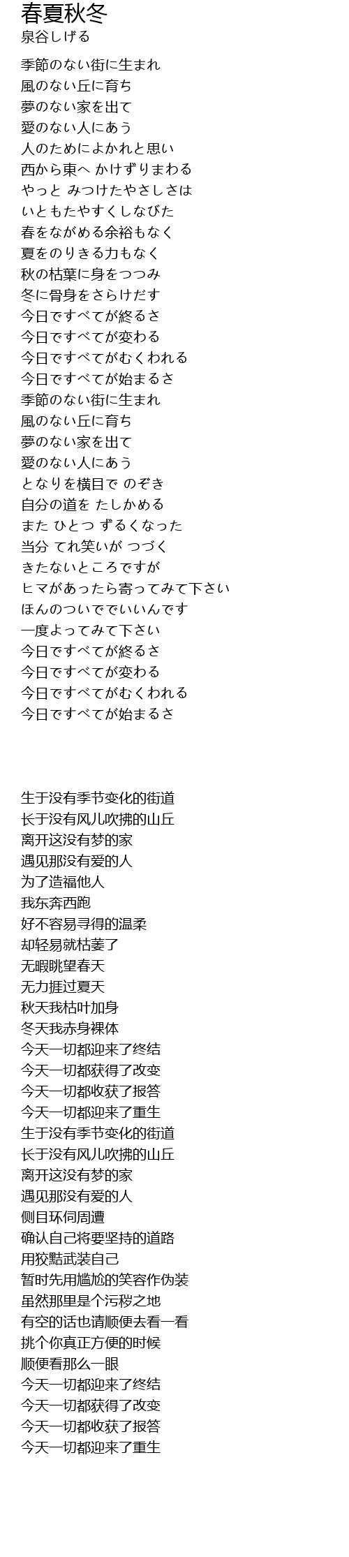 | Song | 春夏秋冬 |