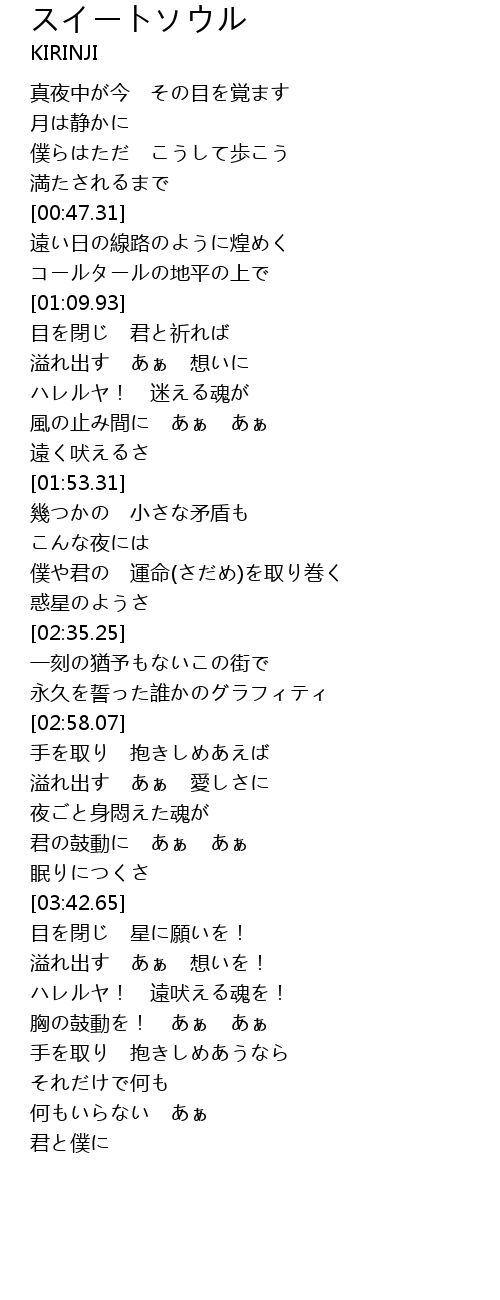 | [01:29.81] | ハレルヤ! 迷える魂が |