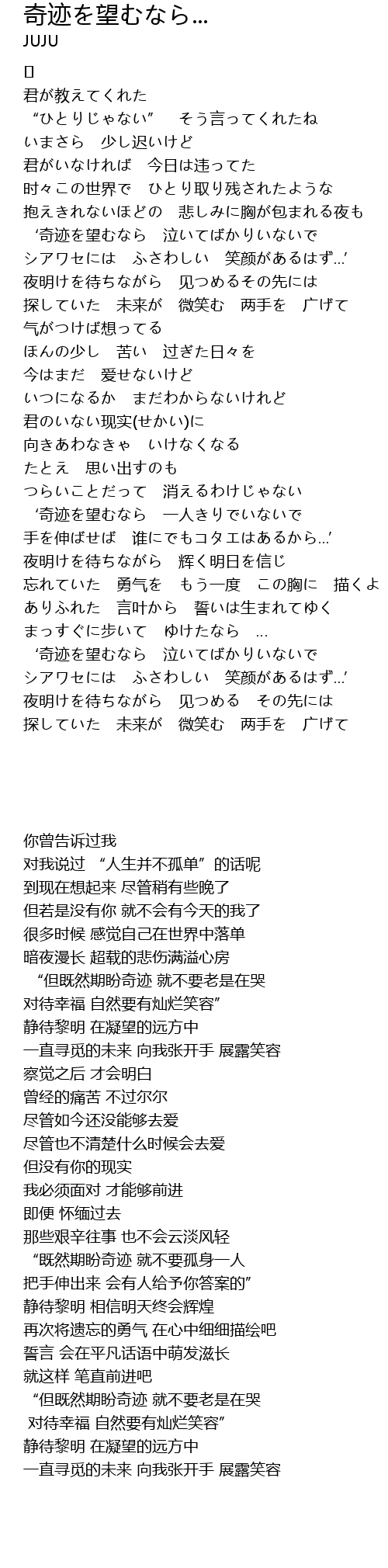 | ‘奇迹を望むなら 泣いてばかりいないで | |