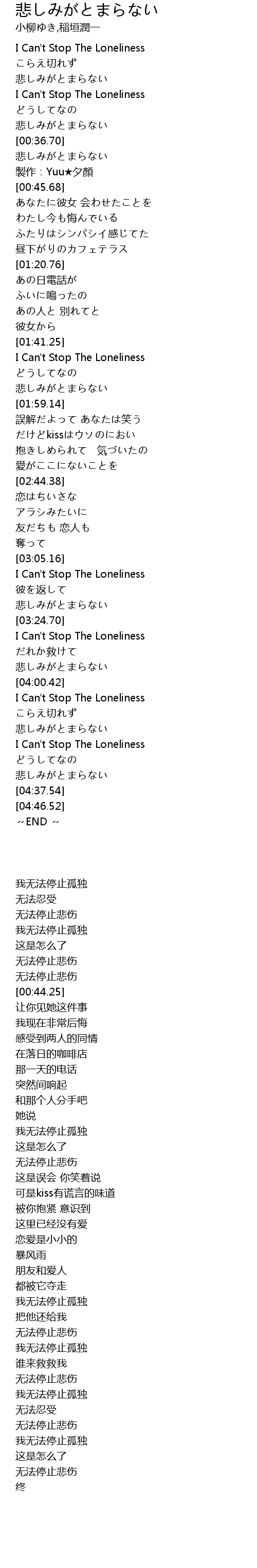 | [00:44.25] | 製作:Yuu★夕顏 |