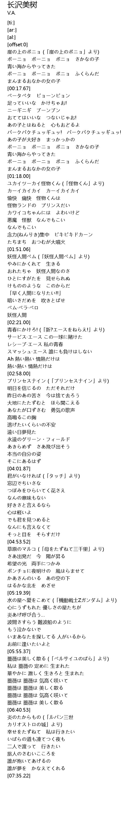 | [01:02.07] | ポーニョ ポーニョ ポニョ さかなの子 |