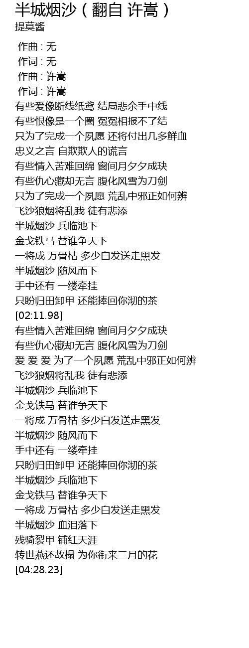 | [04:08.95] | 半城烟沙 血泪落下 |