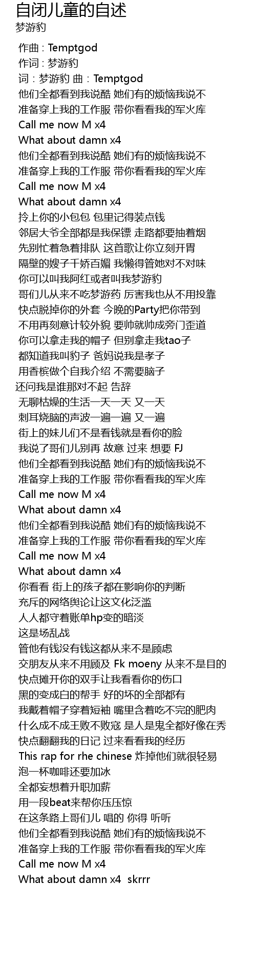 | [00:03.26] | 词:梦游豹 曲:Temptgod |