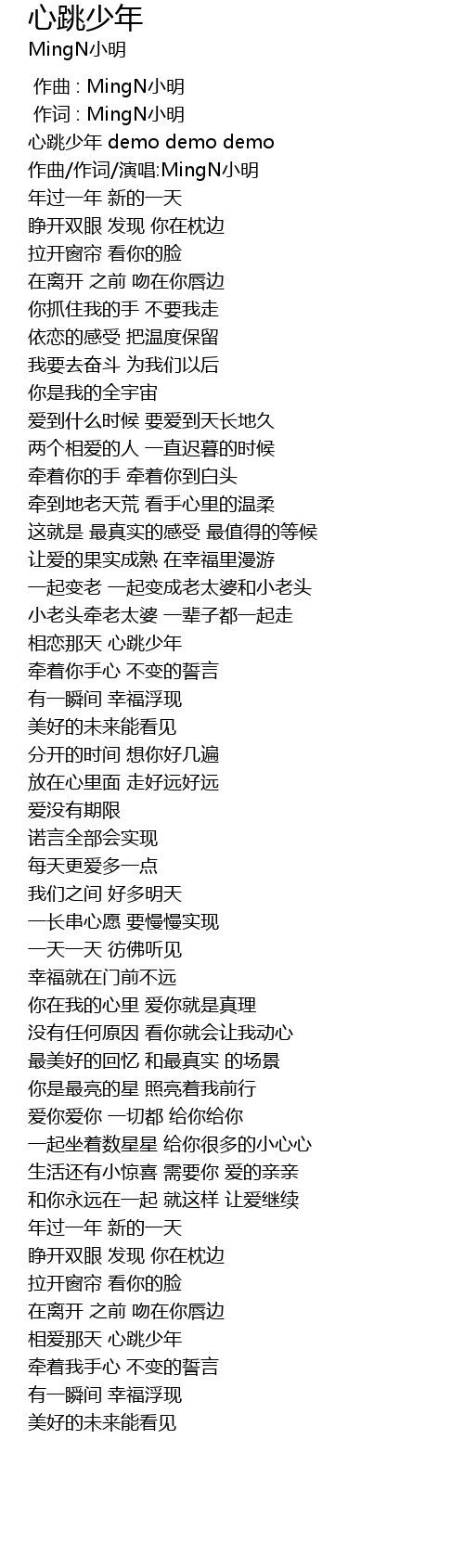 | [00:11.393] | xīn tiào shào nián demo demo demo |