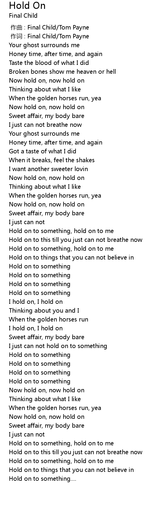 | [01:23.83] | Hold on to this till you just can not breathe now |