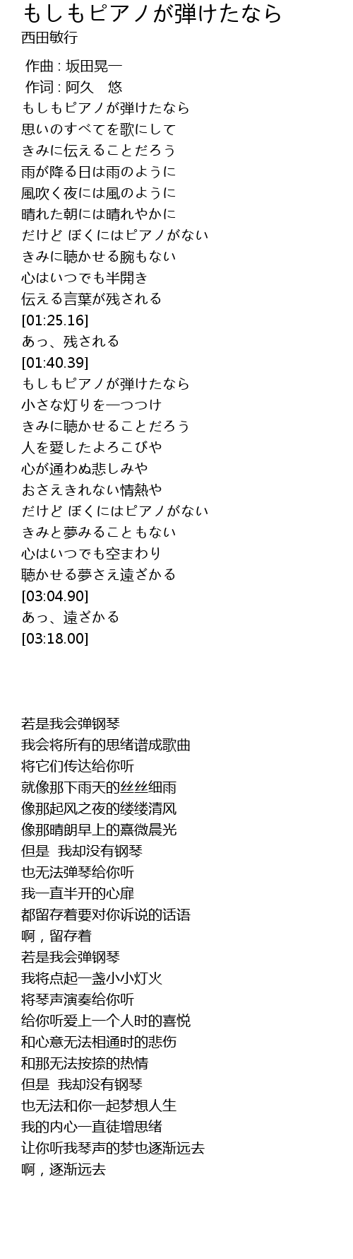 | [01:55.68] | もしもピアノが弾けたなら |