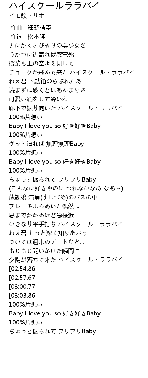 | [03:22.38][02:57.67] | Baby I love you so 好き好きBaby |