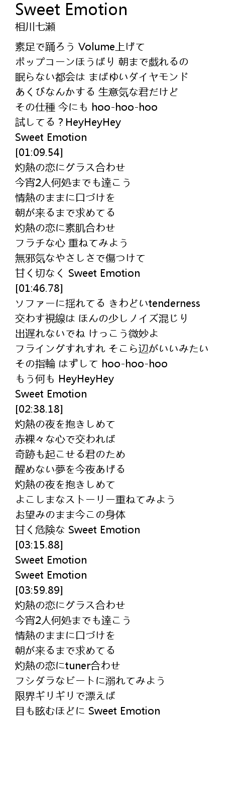 | [03:46.93] | Sweet Emotion |