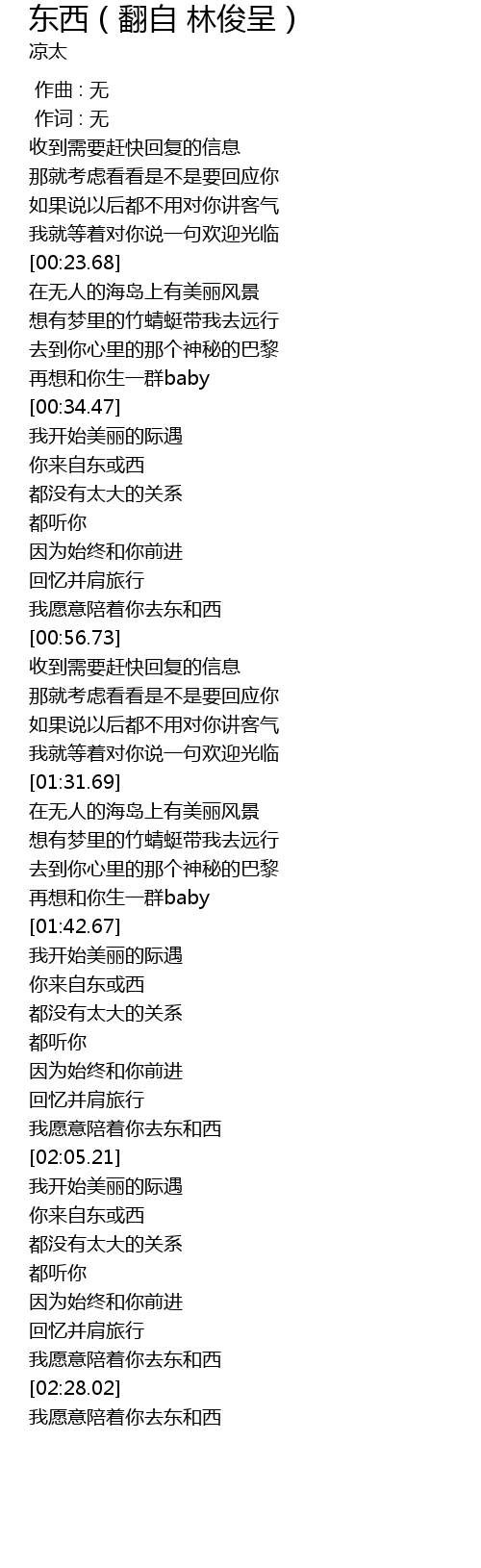 | [02:23.25] | 我愿意陪着你去东和西 |