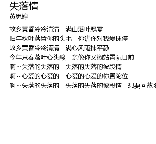 | 啊~失落的失落的 失落的失落的彼段情 想要问故乡你甘知 |
