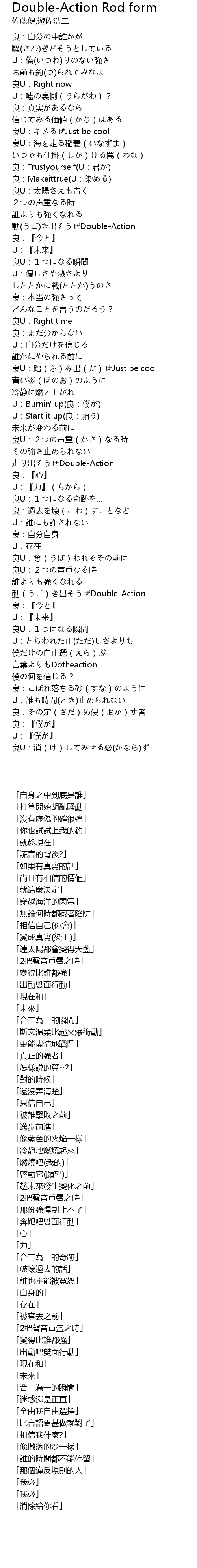 | [02:57.05] | 動(うご)き出そうぜDouble-Action |
