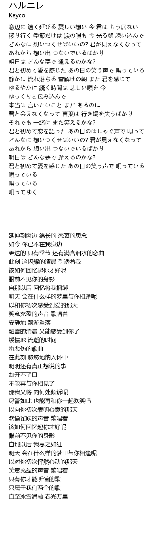 | 君と初めて恋を語った あの日のはしゃぐ声で 唄っている | |