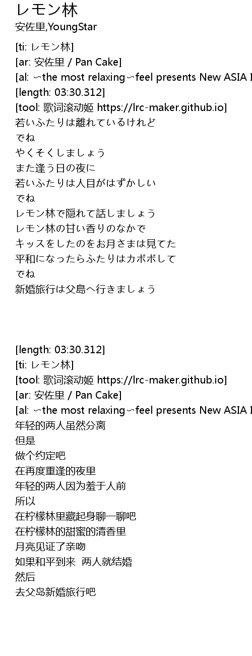 | [00:59.384] | レモン林で隠れて話しましょう |