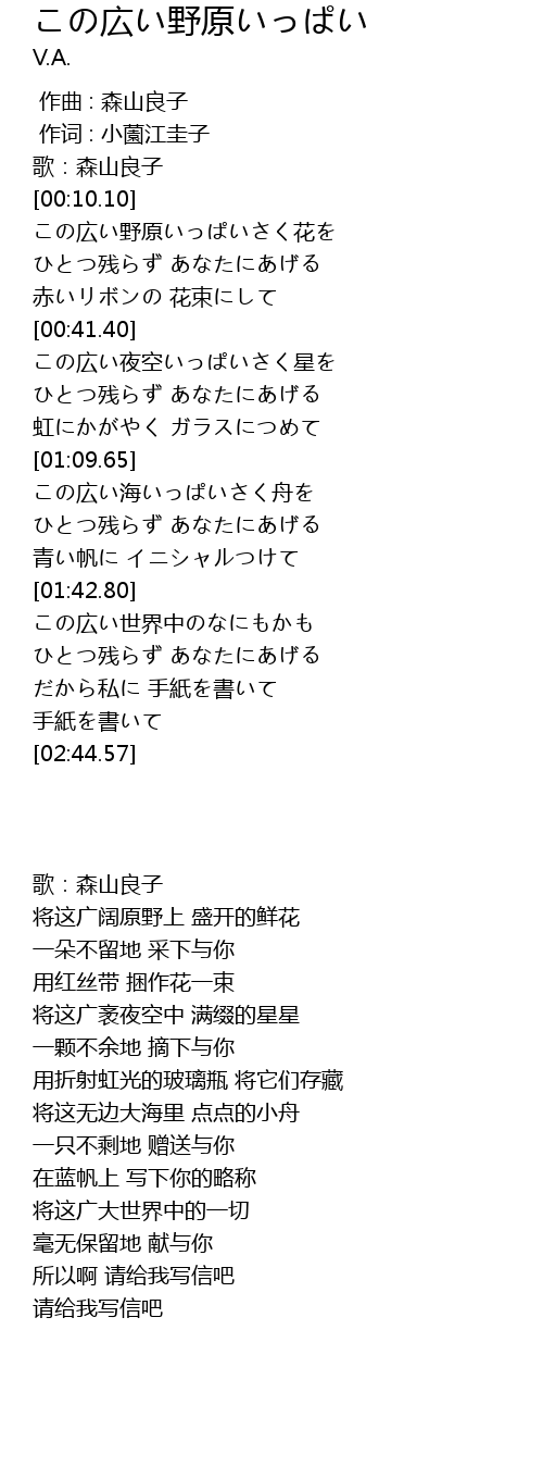 | [00:13.88] | この広い野原いっぱいさく花を |