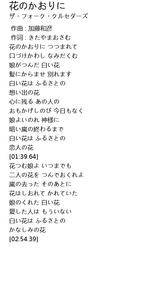 | [02:39.71] | 白い花は ふるさとの |