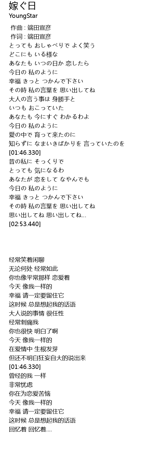 | [02:14.540] | 幸福 きっと つかんで下さい |