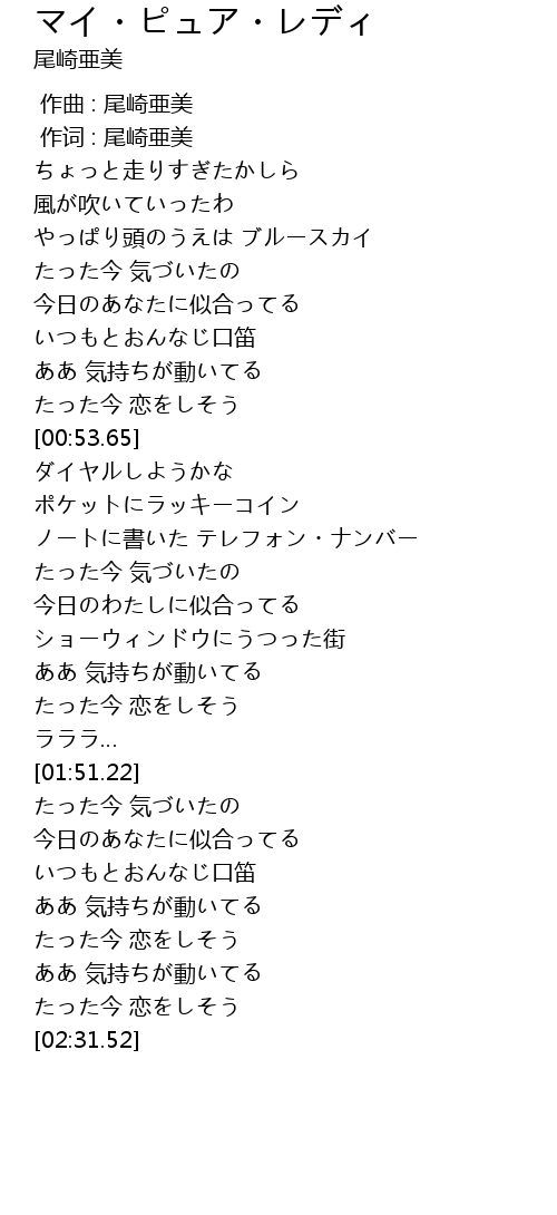 | [00:01.00] | 作词 : 尾崎亜美 |