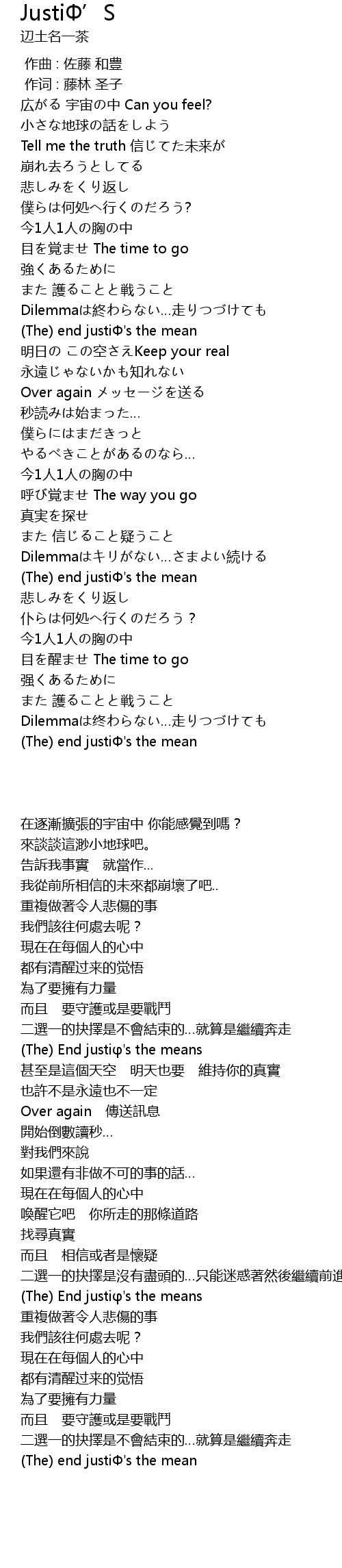 | [01:06.37] | Dilemmaは終わらない…走りつづけても |