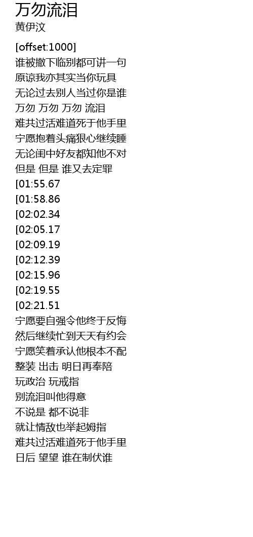 | [00:42.65] | 万勿 万勿 万勿 流泪 |