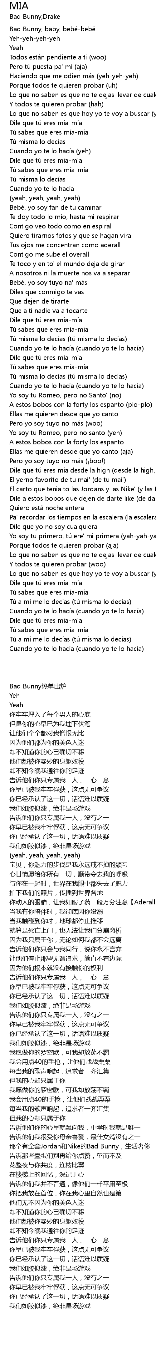 | [00:02.56] | Bad Bunny, baby, bebé bebé |