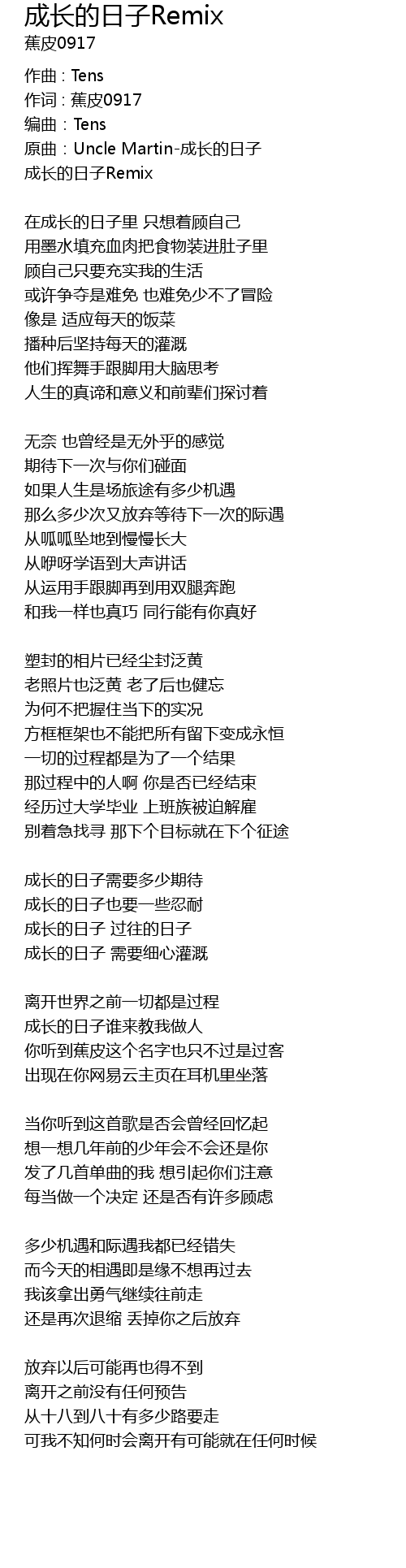 | 原曲:Uncle Martin-成长的日子 | |