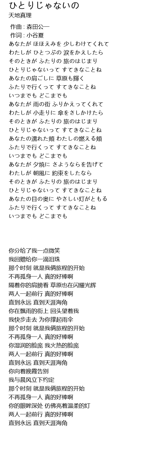 | [01:42.11] | ひとりじゃないって すてきなことね |