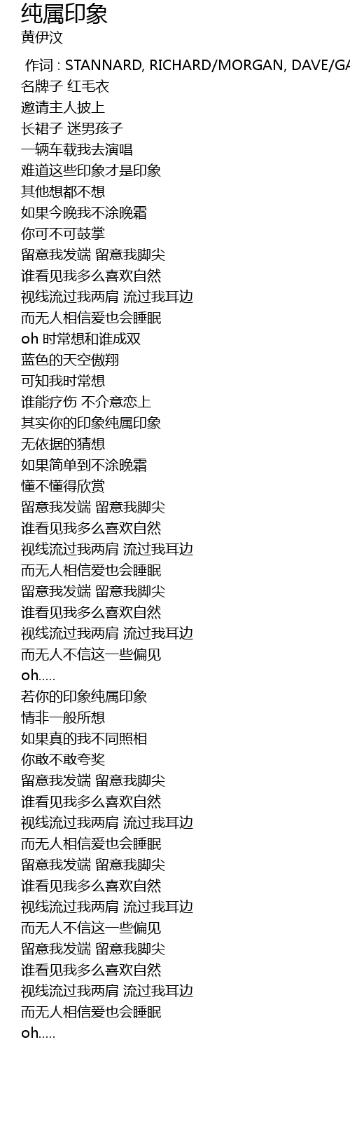 | [01:32.830] | 其实你的印象纯属印象 |
