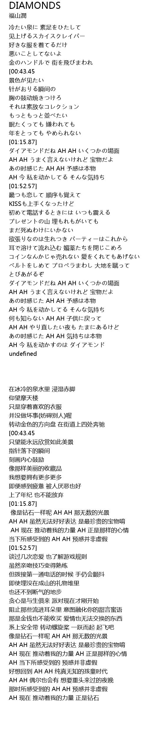 | [01:18.23] | ダイアモンドだね AH AH いくつかの場面 |