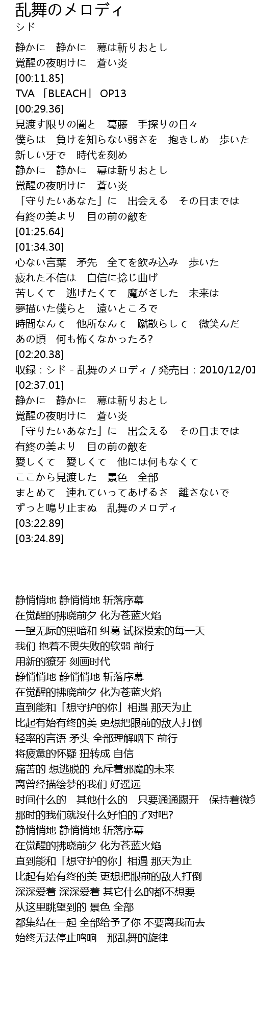 | [02:22.38] | 収録:シド - 乱舞のメロディ/発売日:2010/12/01 |