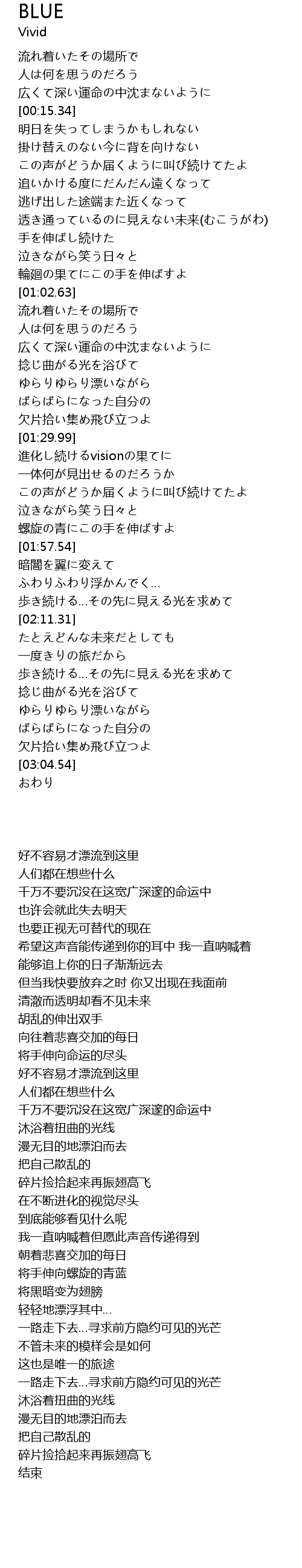 | [00:44.54] | 透き通っているのに見えない未来(むこうがわ) |
