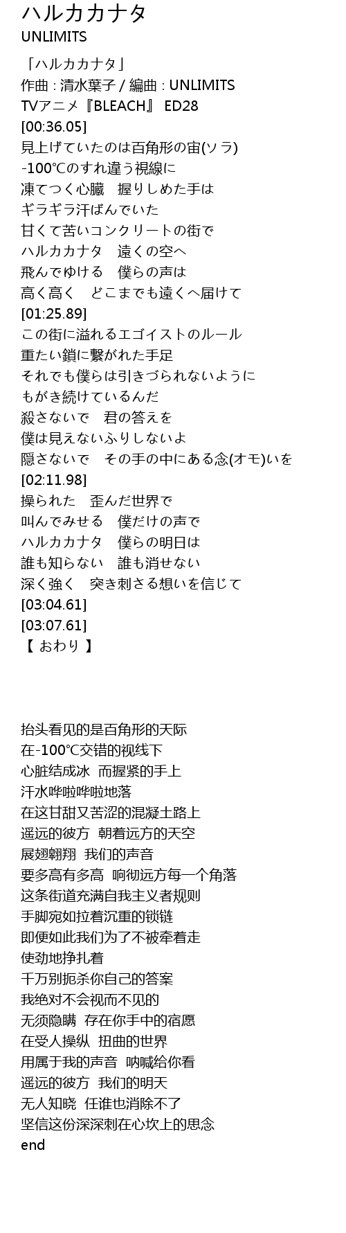 | [00:01.05] | 「ハルカカナタ」 |