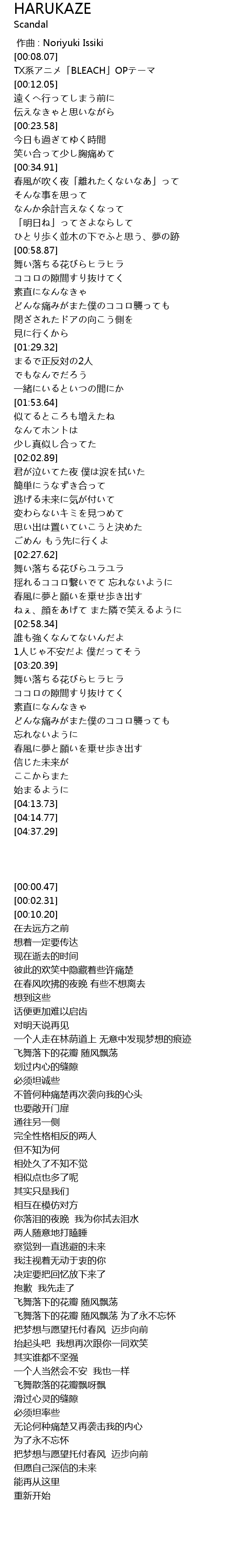 | [00:10.20] | TX系アニメ「BLEACH」OPテーマ |