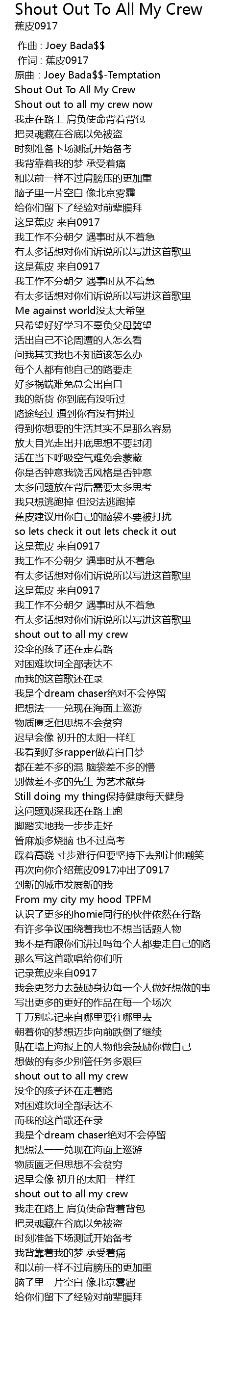 | [02:32.70] | 认识了更多的homie同行的伙伴依然在行路 |