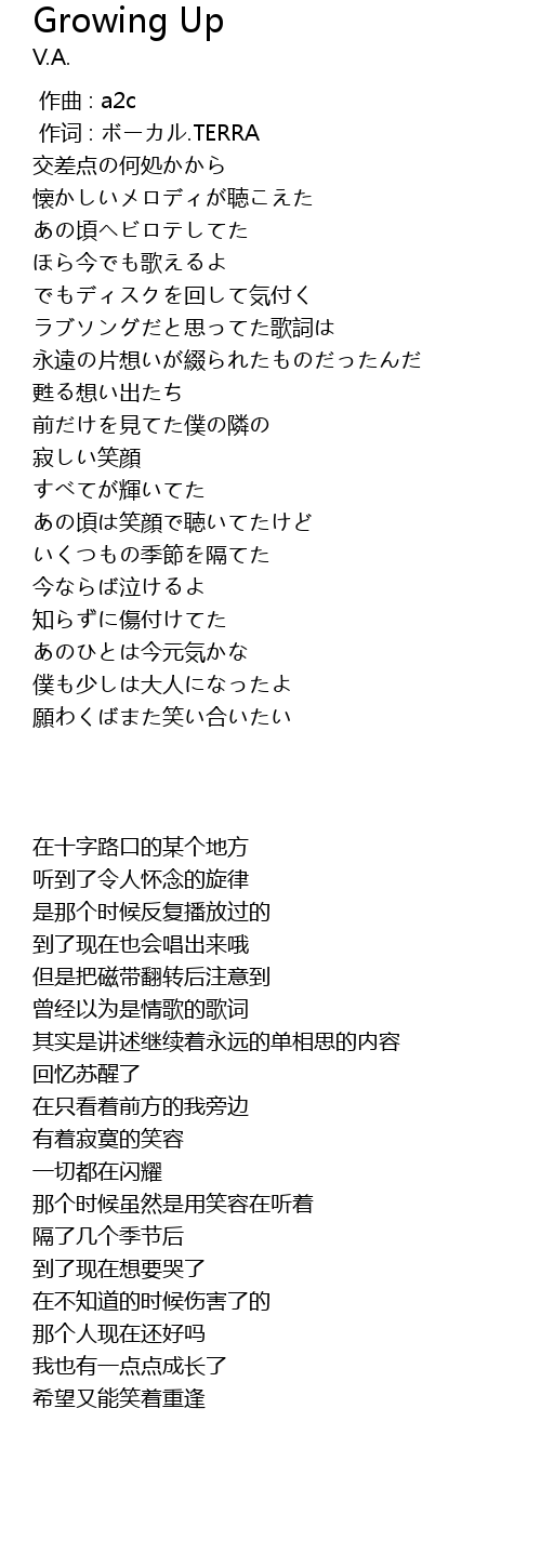 | Song | Growing Up |
