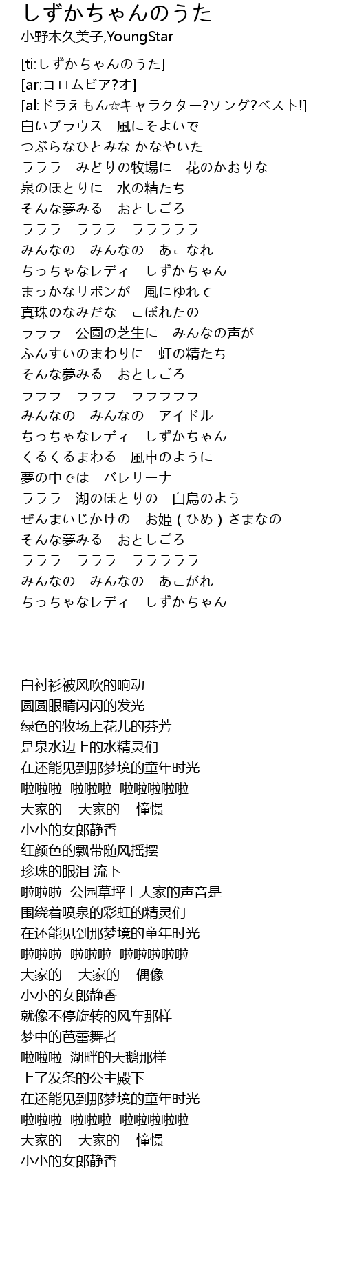 | [00:52.62] | ちっちゃなレディ しずかちゃん |