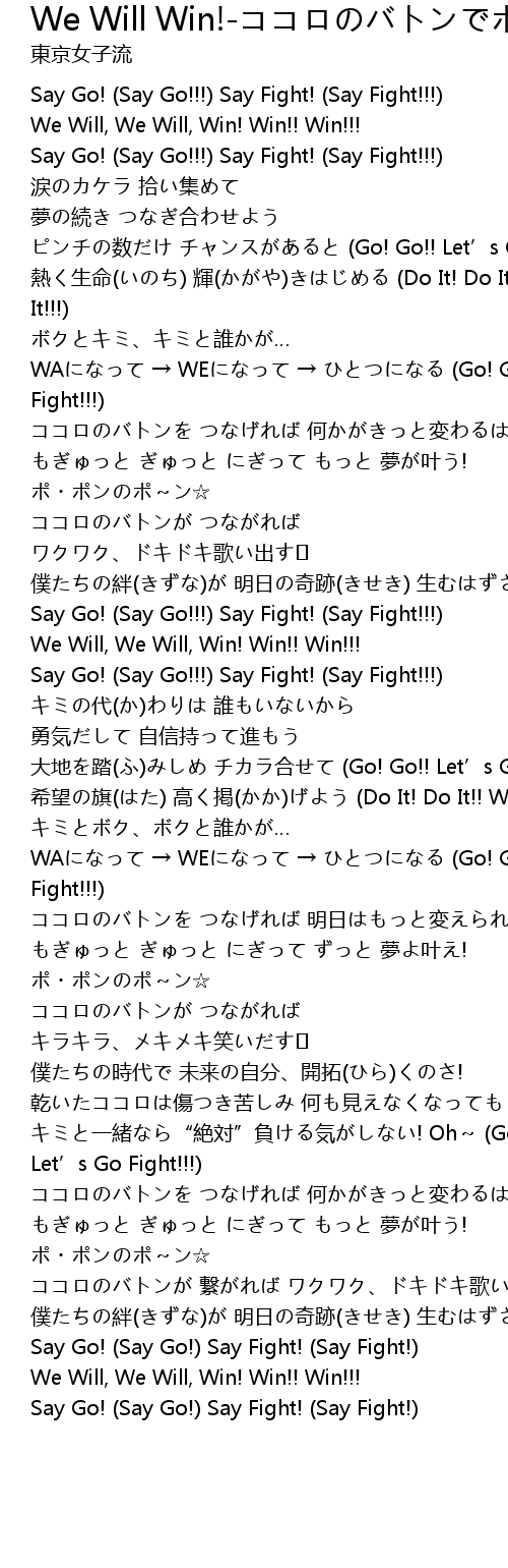 | WAになって → WEになって → ひとつになる (Go! Go!! Let’s Go Fight!!!) | |