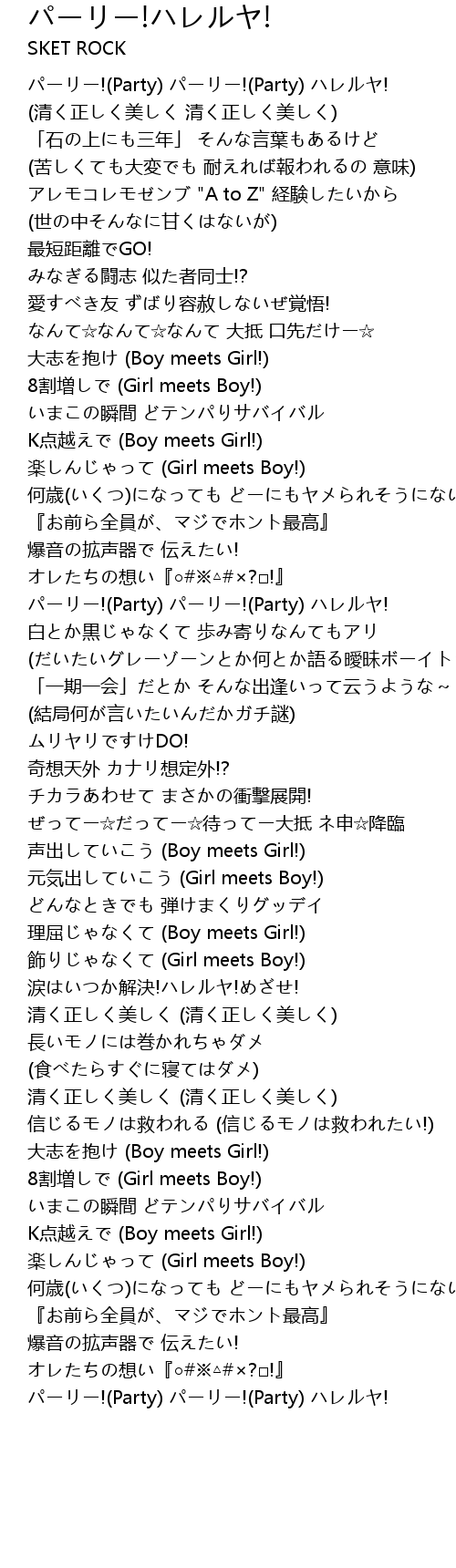 | パーリー!(Party) パーリー!(Party) ハレルヤ! |